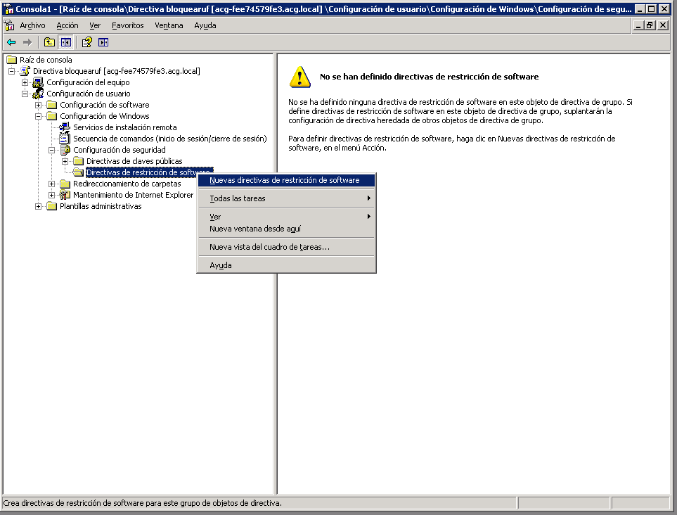 Como ya decíamos, el primer paso es crear una nueva directiva de bloqueo de software: